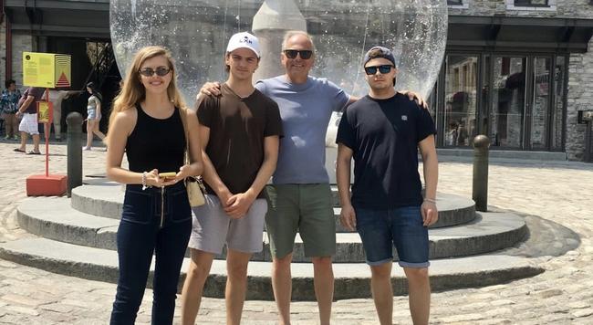 Daniel Bourdages avec ses trois enfants : Ilona, Jonas et Samuel