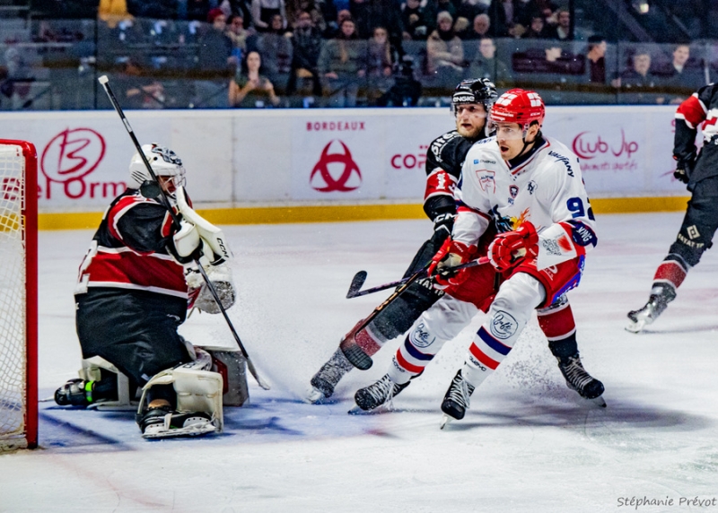 Quelques minutes plus tard, Théo Gueurif voit son tir repoussé par le gardien bordelais (35'20). En fin de tiers-temps, le tir lointain d'Enzo Carry termine dans la mitaine d'un Matija Pintaric, au sommet de son art une nouvelle fois dans ce match.