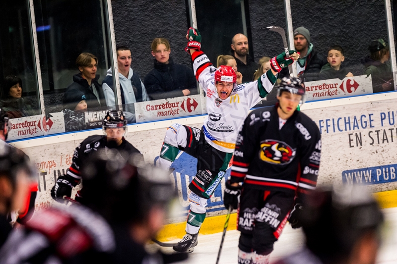 La prolongation est à l’image de cette partie, très engagée. Peltola obtient la première opportunité. Mugnier contenait l’assaut, tout comme Goy devant Luscombe. Le palet repart à l’autre bord pour Fortin, qui à son tour, heurtait un très bon Mugnier en dernier rempart. Les débats sont équilibrés dans cet acte IV de la partie et à ce petit jeu, les visiteurs tranchent les débats à mi-prolongation. Accompagné par Zabis et Céret, Walz libérait les siens en deux temps, 3-4 à 62’36.
