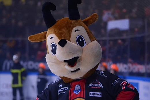Bonjour, je suis Chamy la mascotte du club de hockey sur glace « Les Pionniers de Chamonix ». Une peluche géante vivante représentant un chamois doux et affectueux.