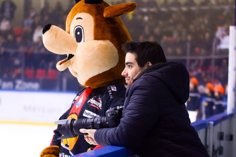 Comme je l’ai déjà dit, je suis allé à Grenoble. J’ai été merveilleusement bien accueilli par le club et j’y ai rencontré Jeff la mascotte des Bruleurs de Loups. Pour l’occasion nous nous sommes « éclatés sur la glace ». Depuis nous sommes des amis.