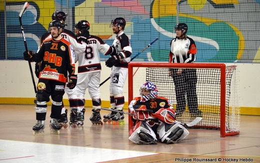 Les nerfs locaux craquent et une nouvelle faute est sifflée, Pergaud perd son sang froid et écope en plus de 10 minutes. Le powerplay girondin fait le métier et parvient une fois encore à trouver Cadren isolé, cette fois dans l'angle, pour alourdir la marque (3-7). | | Photographe : Philippe Rouinssard | |