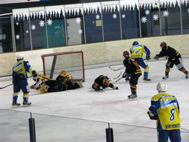 La période recommence à l’avantage des Toulonnais, un slap de Rohacik est stoppé par le bouclier du portier. Brodeur attrape le puck et tire dans le haut de la cage juste sous la transversale (1-13 à 40’58).