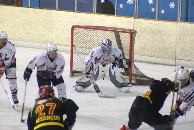 Les Bouquetins envoient dans le fond de zone bisontine, Brisebard fonce sur le palet mais n’arrive pas à le contrôler et laisse Abgral s’en emparer. Frank rattrappe la boulette de son coéquipier, le maître artilleur comtois est sur tous les fronts. Besançon peine à sortir et Wendling est contraint à de nombreux arrêts pour maintenir le score de parité.