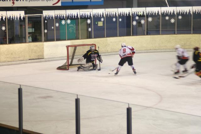 Finalement, Jonathan Pastore se rappelle aux bons souvenirs des bisontins en poussant le puck derrière la ligne de but. (3-10 à 31’40). Besançon n’en peut plus et Vanoise pousse encore et encore. Mounier sur la gauche, dévie pour Cyr, il fait une superbe cuillère qui fait trembler les filets bisontins. (3-11 à 34’36).