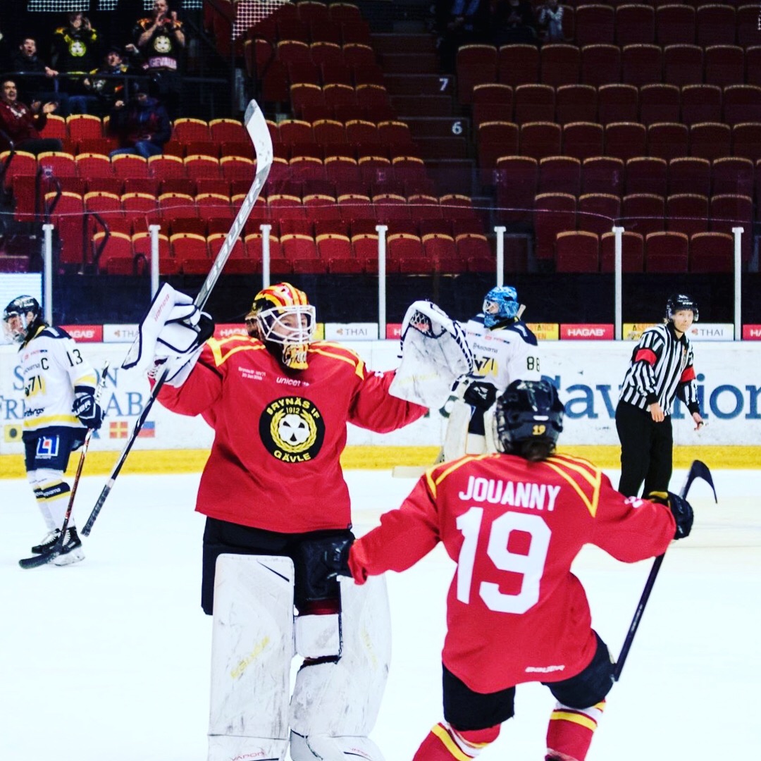 Quand j’ai décidé de partir en suède, c’etait pour trouver un jeu plus physique et rapide et participer a un vrai championnat avec 36 matchs en saison régulière et ensuite play off. Mes objectifs étaient de me faire une place dans l’équipe et de progresser sur mes points à améliorer et surtout cotoyer des filles des équipes nationales comme la Suède, la Finlande...