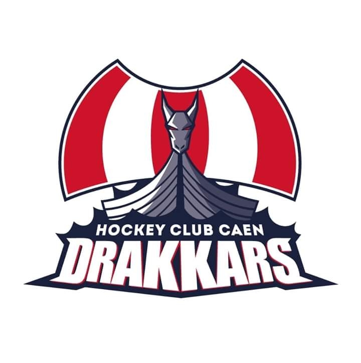 Le club des Drakkars de Caen, change de logo. Le navire viking est vu de face avec sa proue menaçante et ses voiles déployées. L'inscription du nom du club est écrite en blanc sur la mer déchaînée par les vagues. Le mot "drakkar" est entouré de rouge.