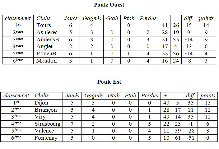 Anglet/Asnières (match en retard, vendredi 5 à Asnières)