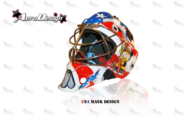 Le gardien de but des Peaux Rouges d'Evry, Benjamin Roullier, a eu la gentillesse de nous dévoiler son nouveau masque. Vous pouvez d'ailleurs découvrir d'autres oeuvres de ce type sur le site Aerodesign.fr (en cours de restructation)