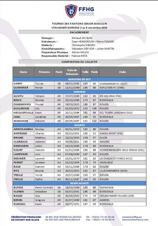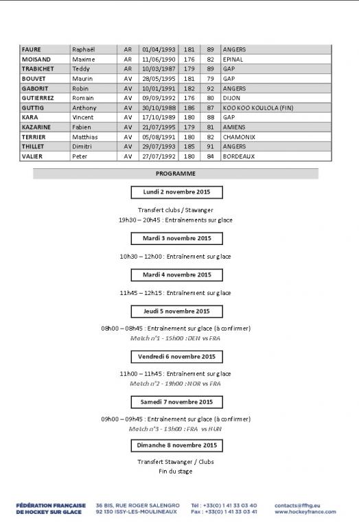 La FFHG annonce ce jour la composition du groupe de l'équipe de France qui se réunira du 2 au 8 novembre prochain pour un stage et 3 matchs amicaux.